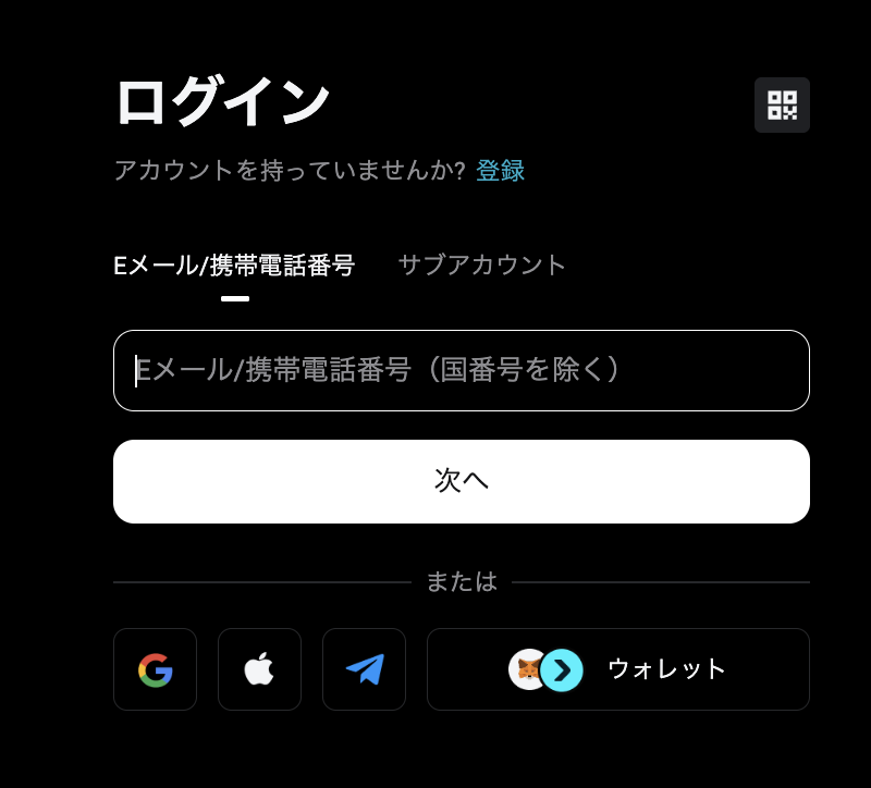 • 日本円の直接入金には非対応のため、国内取引所からの暗号資産送金が必要