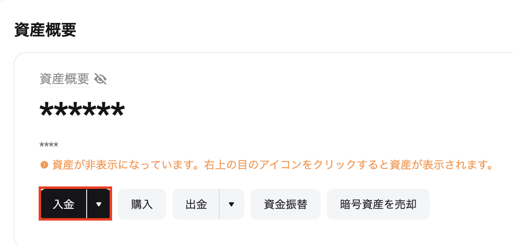 マイページ>ダッシュボード>資産概要から入金を選択します。