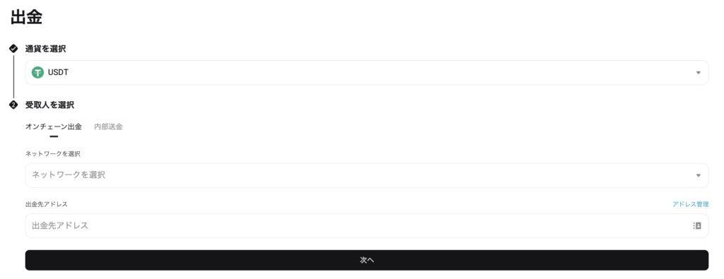 通貨・受取人・送金アドレスを選択・入力すれば、Bitgetからの出金は完了です。