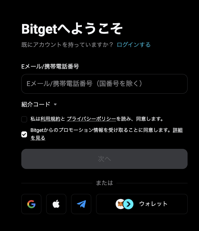 • Bitget公式サイトへログイン